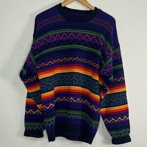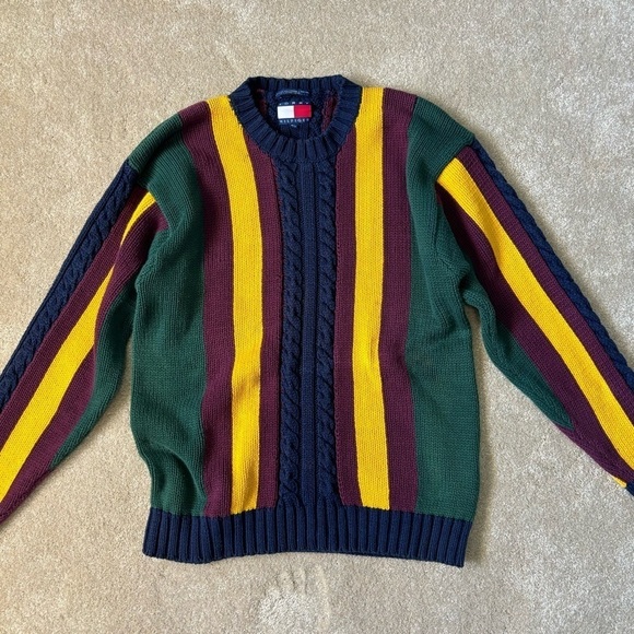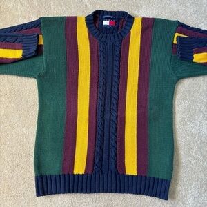 Vintage Tommy Hilfiger Chunky Knit Colorblock Stripe Pullover Sweater Cotton