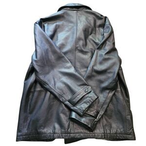 Vintage Tommy Hilfiger Coat Men's XL Black Leather Double Breasted Quilted