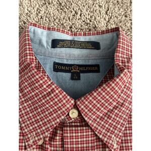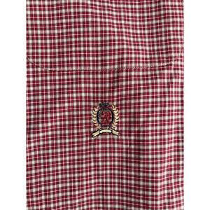 Vintage Tommy Hilfiger Crest Logo Red Contrast Plaid Long Sleeve Button Front L