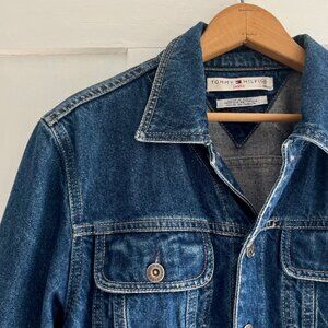 GUC classic wash vintage jean jacket from Tommy Hilfiger! Broken in, with a few scuffs/crease lines from wear, but no stains or major flaws. Features hand and chest front pockets, button up closure and adjustable waist tabs. Classic for a reason a high quality jean jacket will always make your fits more cool! So easy to layer with and will last forever!