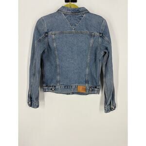 Light wash vintage Tommy Hilfiger denim jacket. This is the perfect denim jacket. Has the leather TH rectangle on the back bottom. Classic denim jacket features. Perfectly distressed just by age. No flaws.