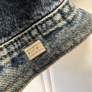 Iconic denim jacket with signature branding. Timeless style and versatile design. Vintage 1999! Great condition! measures 21in pit and 23in long. Woman's XL 100% cotton!