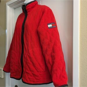 Vintage Tommy Hilfiger Flag Patch Quilted Fleece Full Zip Jacket Size small Red