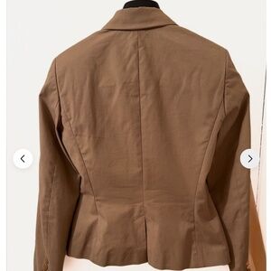It features a collared neckline, khaki color, and button accents that add to its timeless aesthetic. The jacket comes in petite small size and is perfect for women who love the 90s fashion style. It also has buttoned pockets that are convenient for carrying small items. This women's jacket is perfect for any occasion and will make you stand out in the crowd.