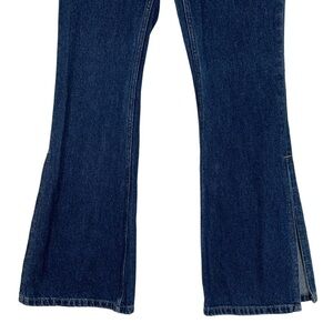 features: 100% denim cotton fabric. Lower rise. Slim through the leg with a classic boho hippie flare leg. Side ankle slits. Pockets. Zip to button closure
