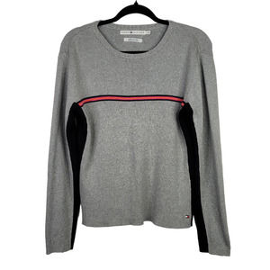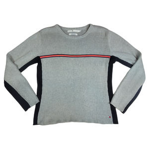 Vintage Tommy Hilfiger Gray Colorblock Ribbed Sweater Large Pink Stripe Pullover