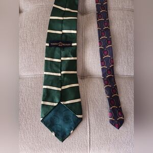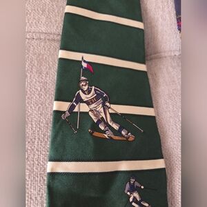 Vintage Tommy Hilfiger Green and Navy Patterned Skiers Men's Ties