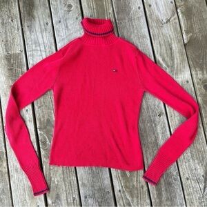 Vintage Tommy Hilfiger Flag Women's Turtleneck Sweater Ribbed Knit.