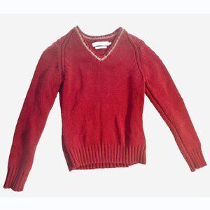 Vintage Tommy Hilfiger Jeans Women’s Red V-Neck Pullover Sweater Tan Trim Size M