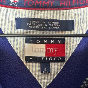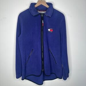 Vintage Tommy Hilfiger Mens Full-Zip 90s Logo Retro Purple Fleece Jacket Small