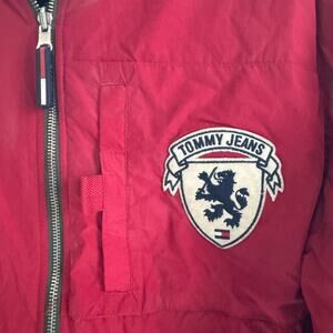 Vintage Tommy Hilfiger Mens Jacket Reversible Fleece Size Med Y2K Spell out Hood