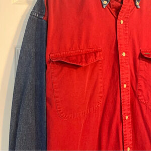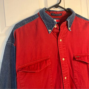 Vintage Tommy Hilfiger Mens Large Long Sleeve Denim Button Up Shirt Pockets