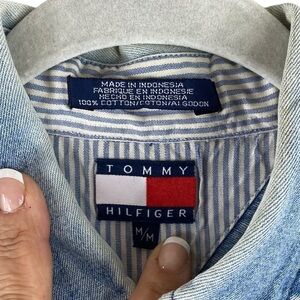 Vintage Tommy Hilfiger Men’s Light Wash Denim Button Down Shirt Sz M