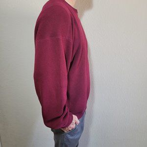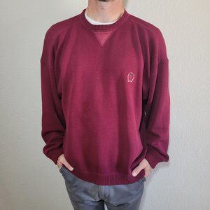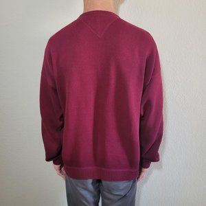 Vintage Tommy Hilfiger Mens Red Sweater Large Maroon Chunky Heavy Knit Crew Neck