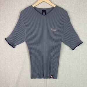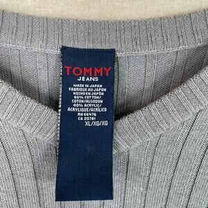 Vintage Tommy Hilfiger Mens Rib Knit Sweater Size XL Fitted Logo Preppy 90s Gray