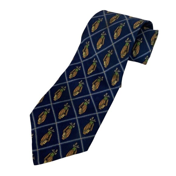 Vintage Tommy Hilfiger Mens Tie Golf Clubs Bag Navy Blue Imported Silk USA