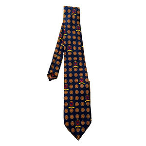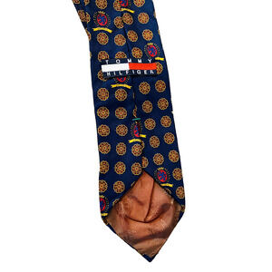 Vintage Tommy Hilfiger Mens Tie Navy with TH Crest Geometric Pattern