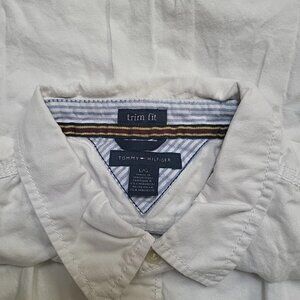 Vintage Tommy Hilfiger Men's White Button Down with Crest Sz L