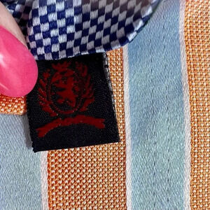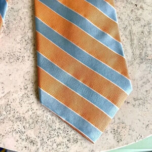 Vintage Tommy Hilfiger Mens Blue Orange Striped Silk Designer Necktie One Size