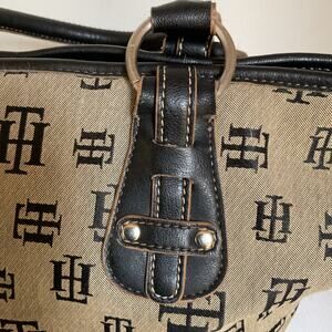 Vintage Tommy Hilfiger Monogram Tote – Black Beige Y2K