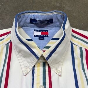 Vintage Tommy Hilfiger Multi Stripe 90s Y2K Button Down Short Sleeve Shirt