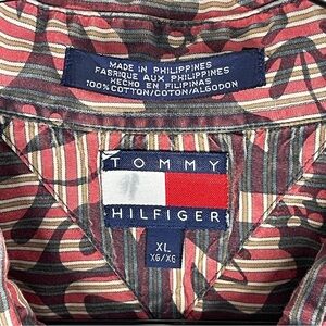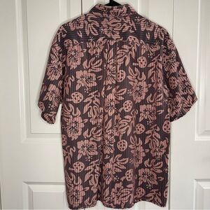 Vintage Tommy Hilfiger Pink Black Tropical Print Overlay Size XL Short Sleeve