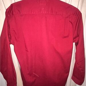 Stylish polo by Vintage Tommy Hilfiger. Features red and beige tones. Signature logo on the label.