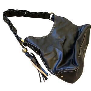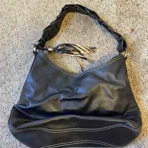 Vintage Tommy Hilfiger Shoulder Bag Purse Black Faux Leather Gold Tone Hardware