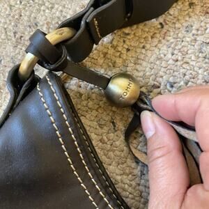 The Vintage Tommy Hilfiger Shoulder Bag Purse in black faux leather with gold tone hardware is a stylish and versatile accessory for women. This small crescent-shaped bag features a magnetic closure, brown handle/strap, and gold hardware accents. Perfect for travel, parties, casual outings, or business meetings, this purse is lined with pink fabric and includes inner pockets for organization. The vintage charm, along with the iconic Tommy Hilfiger brand, adds a touch of retro flair to any outfit.