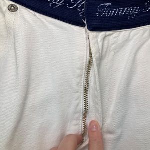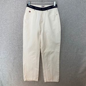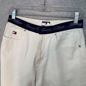 Vintage Tommy Hilfiger Size 8 White Jeans Spellout Logo Waist 5 Pocket High Rise