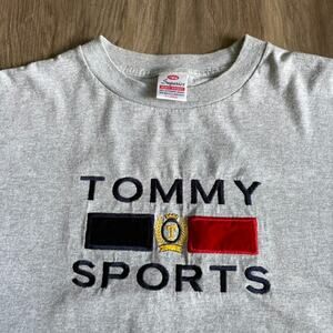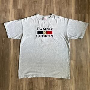 Vintage Tommy Hilfiger Sports Flag T-Shirt Men's Size XL Gray Embroidered