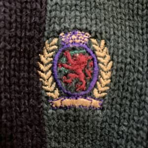 The product is a vintage Tommy Hilfiger sweater for men in size XL. This 90s striped crewneck sweater is made of cotton knit fabric and features a zip closure. It is designed for casual occasions and has a pullover style with accents like a zipper. The sweater is suitable for activities like golf and cross training, making it a versatile and stylish addition to any wardrobe.