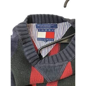 Vintage Tommy Hilfiger Sweater Mens XL 90s Striped Crewneck Cotton Knit