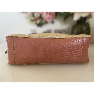Vintage Tommy Hilfiger Tan Pink Bagette Handbag Purse Faux Alligator Print 11X7