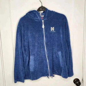 Vintage Tommy Hilfiger Terry Cloth Jacket Hoodie Womens XL Full Zip Logo Blue