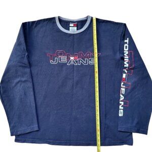 Vintage Tommy Jeans Long Sleeve Shirt Men’s L Y2K Streetwear Logo Tee Navy