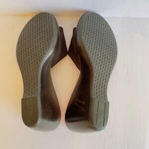 Wedge heels in like new condition. I tried to remove the sticker on footbed but it pulled up the leather a little so I've left it alone.