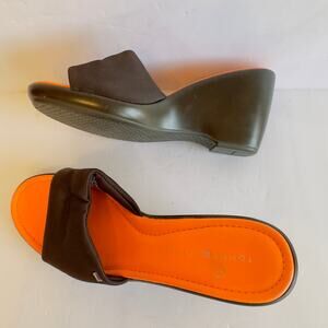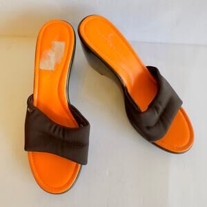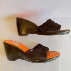 Vintage Tommy Hilfiger Wedge Black Heeled Slides Y2K Sandals Orange Sporty 8.5