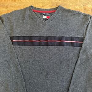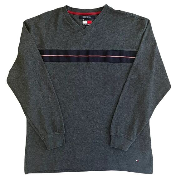 Vintage Tommy Hilfiger Y2K Sweater Mens L High V Neck Grunge Stripe Logo 90s
