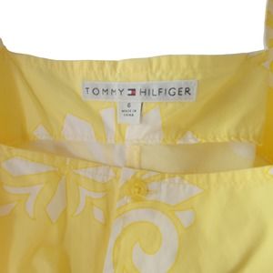 Vintage Tommy Hilfiger Yellow Sun Dress POCKETS Floral Buttons Sleeveless Summer