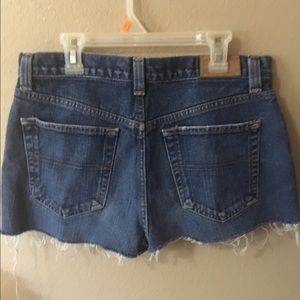 Cut and frayed from jeans. Waist size is the same as a 4 in American eagle shorties.