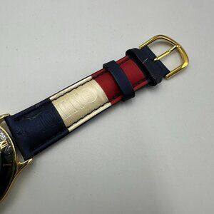 Vintage Tommy Hilifiger Watch Men Black Dial Striped Leather Band Y2K Works 9"