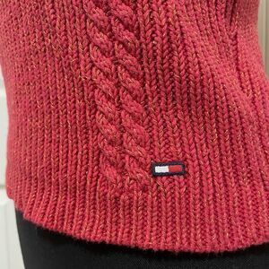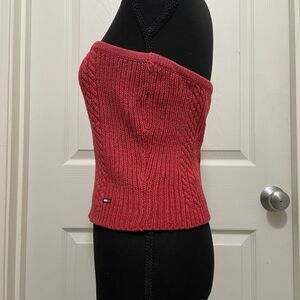 Vintage Tommy Jeans Cable Knit Tube Top Red Gold Strapless 90s Y2K Hilfiger L