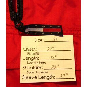 Vintage Tommy Jeans Windbreaker Pullover Rain Jacket Spellout Size XLThis is a Vintage Tommy Jeans Spellout Pullover Windbreaker Jacket. Jacket is a size XL and is in good condition. 2 small ink spots are barely noticeable. See pictures for best assessment.
