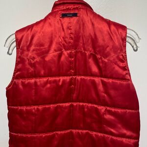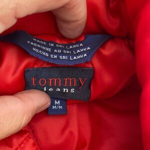 Vintage Tommy Jeans Women's Red Satin Collared Full Zip Puffer Vest Medium