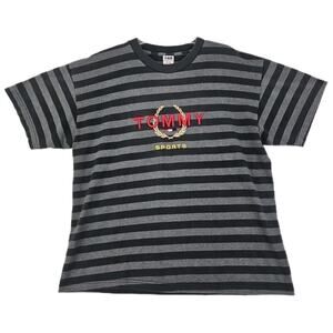 Vintage "Tommy Sports" ~Men's Size XL~ Gray Striped Embroidered Logo T-Shirt.