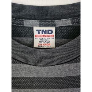 This Vintage "Tommy Sports" T-Shirt in Men's Size XL features a classic crew neck design with an embroidered logo, perfect for fans of Tommy's sports-themed line. Made from a comfortable cotton blend knit fabric, this gray striped shirt is suitable for all seasons, making it a versatile addition to any wardrobe. With a regular fit and easy care instructions, this Tommy branded shirt is a stylish and nostalgic choice for those who appreciate vintage clothing.