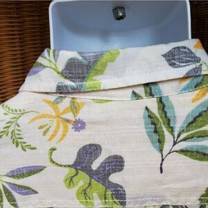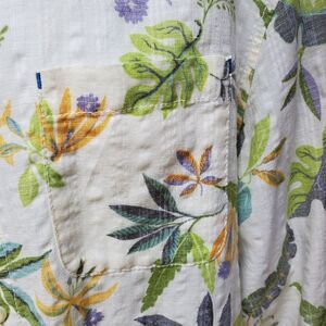 This is a vintage Tommy Bahama Hawaiian print shirt. The print has been copyrighted. The fabric is linen/cotton.