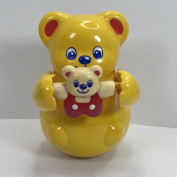 Vintage Tomy Roly Poly Yellow Bear and Cub Bell Chimes 1991