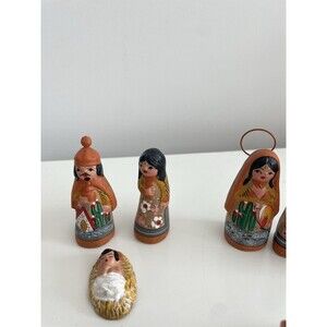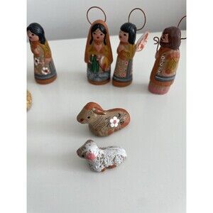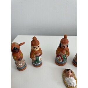 Vintage Tonala 50's Terra Cotta Mexican Clay Nativity 14 Piece Hand Painted Set